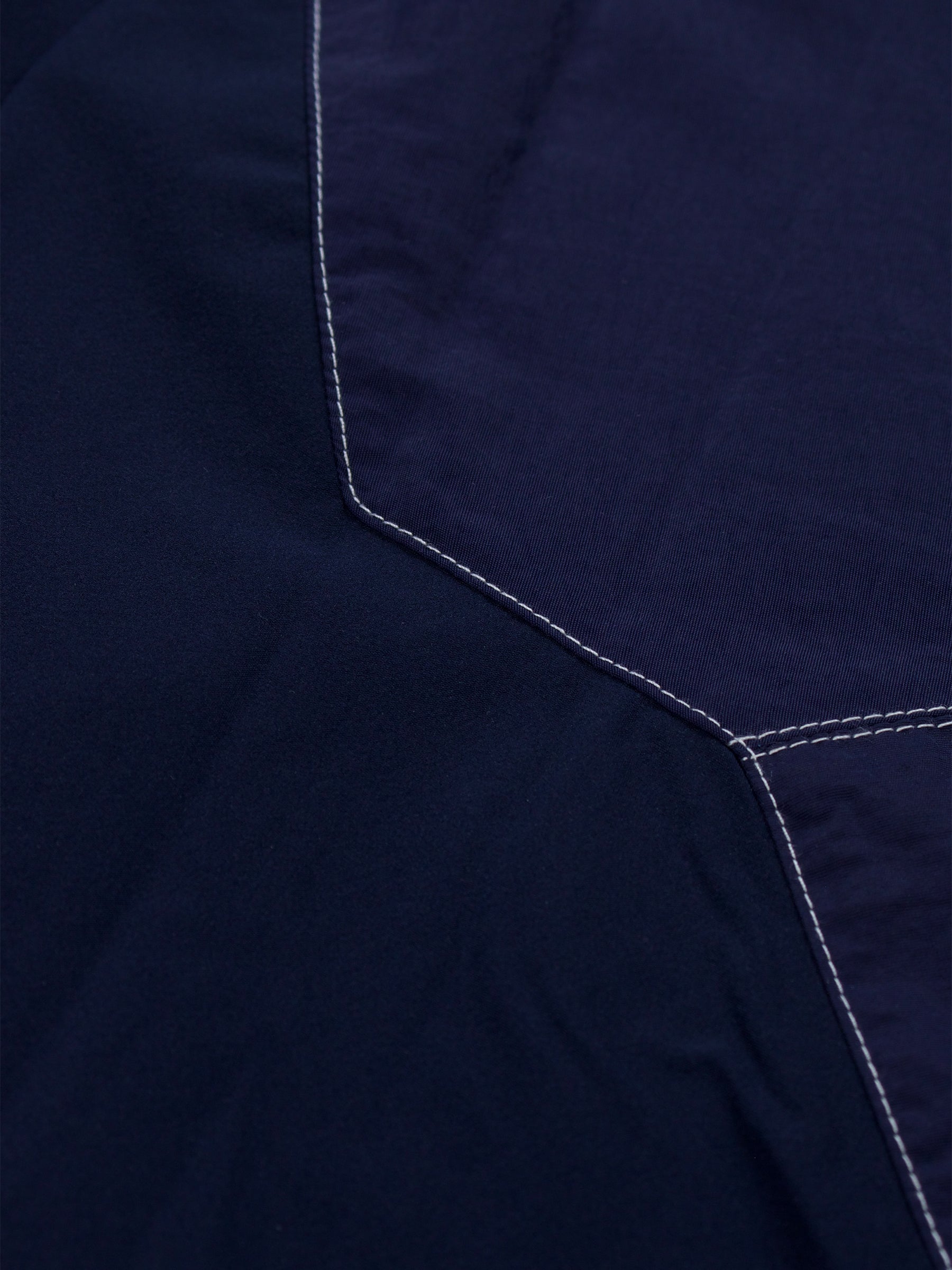 An early iteration of our Tactical Panel Sweat, developed prior to final production. This navy version features cotton canvas panel construction in place of the later nylon execution, finished with contrasting stitch detailing that defines the silhouette. The numerical Seven Quarters embroidered logotype remains understated at the chest - a refined study of structure and tactical form in its developmental stage.